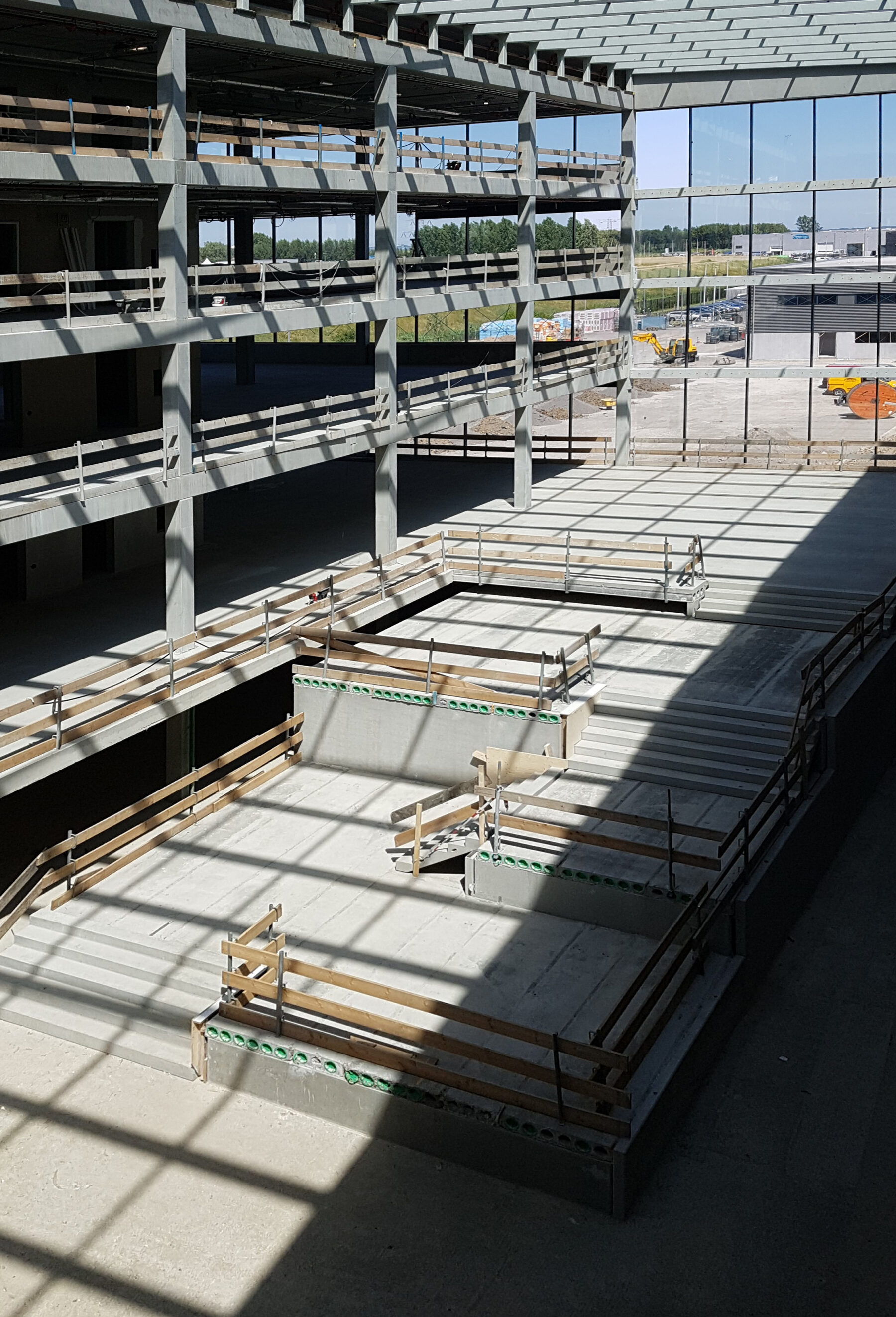 The head office for Dow Benelux is almost completely wind and waterproof. And in the interior completion has started.